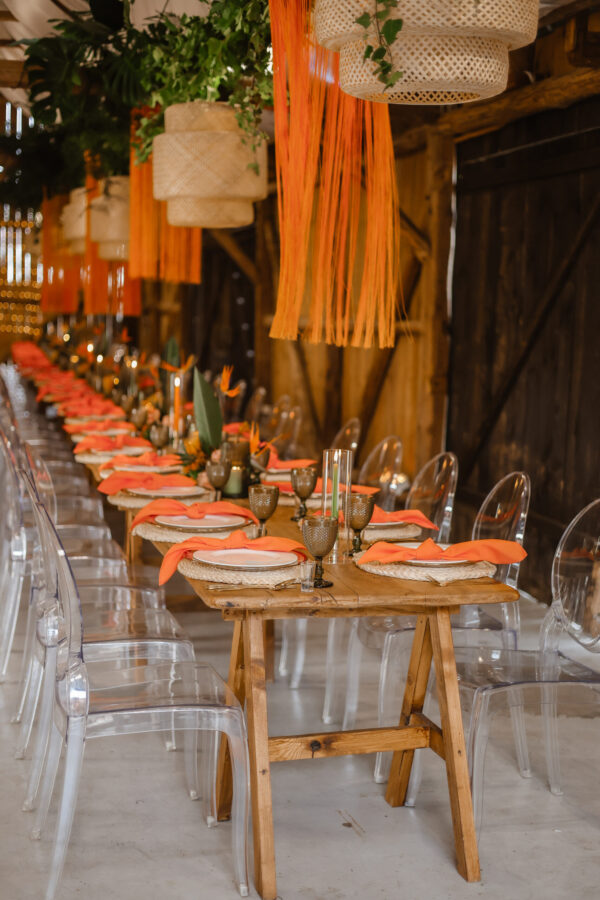 Oferujemy eleganckie i nowoczesne krzesła transparentne, które doskonale pasują do różnorodnych wnętrz i stylów, dając im subtelnej lekkości. Krzesła można wynająć zarówno z poduszkami dla dodatkowego komfortu, jak i bez poduszek – wówczas są całkowicie przeźroczyste i dają wspaniały efekt. Idealne do ślubów, eventów oraz innych uroczystości. Nasze krzesła stanowią niezwykle efektowny element dekoracyjny, który podkreśli wyjątkowy charakter każdego wydarzenia. Posiadają jeszcze jedną ogromną zaletę – będą pasowały do każdej palety kolorystycznej.